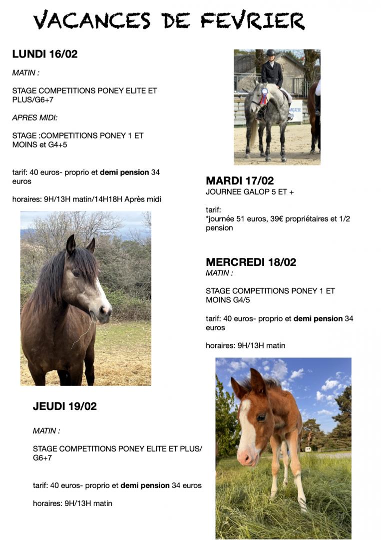 Nous proposons des cours d’équitation dès deux ans et demi à l’adulte, des stages d’équitation lors des vacances scolaire, des pensions pour chevaux et poneys.