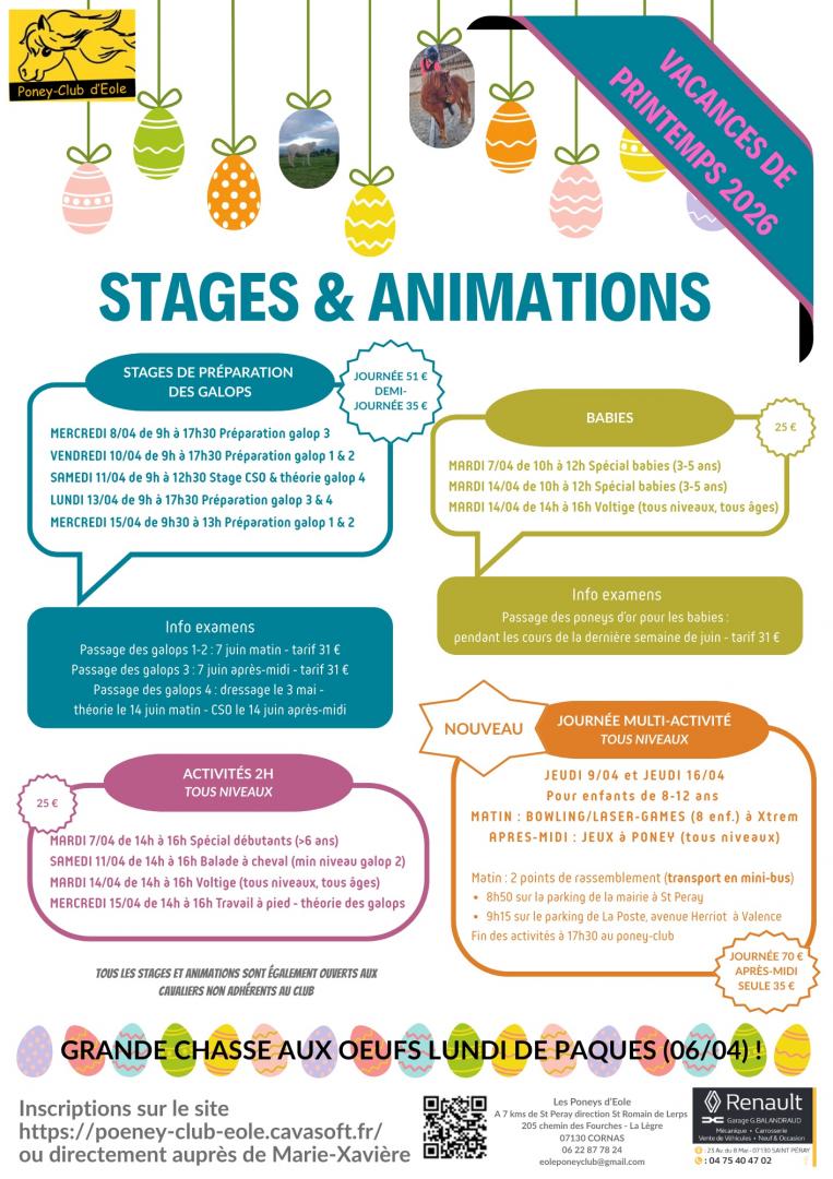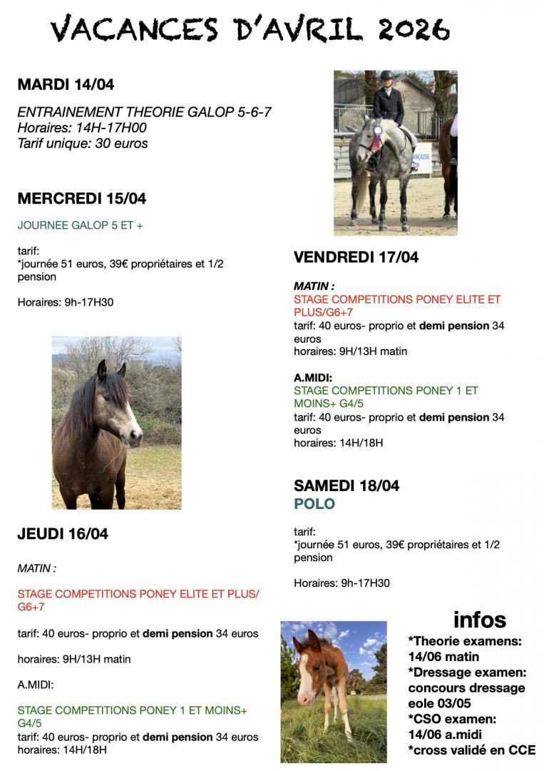 Nous proposons des cours d’équitation dès deux ans et demi à l’adulte, des stages d’équitation lors des vacances scolaire, des pensions pour chevaux et poneys.